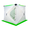 Палатка зимняя Куб "Улов" предназначена для зимней рыбалки, позволяющая рыболову чувствовать себя максимально комфортно на зимней рыбалке в любых погодных условиях. Палатка обеспечивает защиту от ветра, дождя и низких температур, а продуманная конструкция самого тента позволяет установить её в течение 30 секунд. В собранном виде палатка имеет форму куба с выпуклыми наружу стенками, что способствует увеличению внутреннего объема и позволяет рыболовам стоять в полный рост. Увеличенный размер входа позволит свободно заходить в палатку, даже с учетом вашей зимней одежды. Прочный каркас палатки выполнен из фибергласса и обеспечивает сохранение кубической формы даже при сильном ветре. Прочная водостойкая ткань тента (NYLON 300D THERMAL) надежно защитит от ветра и осадков. Проклеенные швы на крыше палатки препятствуют проникновению влаги в палатку. Тент палатки выполнен из комбинированной расцветки, которая позволяет пропускать дневной свет во внутрь палатки, благодаря чему рыболов имеет возможность ловить рыбу в дневное время без подсветки дополнительными осветительными приборами. Данная палатка - это идеальное решение для зимней рыбалки, обеспечивающее защиту от ветра, дождя и низких температур. Палатка имеет вентиляционные окна. Окна расположены на таком уровне от пола палатки, что свет, проходящий через окно будет освещать зону рук рыбака, это сделает рыбалку более комфортной. За счёт кубической формы и высоты в палатке может без стеснения находиться несколько человек.
