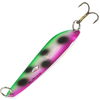 "Изюминка" колебалок Freeway в сочетании простой геометрии и броского дизайна. Вытянутый корпус напоминает овал. Нижняя часть чуть шире с небольшим изгибом. Длина блесен от 9,5 см до 11,5, а масса 13,1-13,5 гр. Игра приманки Freeway амплитудная и дразнящая. Но в глаза в первую очередь бросается дизайн: яркие цвета, наличие рисунков в виде скелета, полоски, пятна, объемные капельки - и прочие "завлекалочки". Блесна поможет обловить средние глубины в стоячих акваториях или с очень слабым течением. Охотиться с такой колебалкой можно на зубастую щуку и любопытного крупного окуня.
