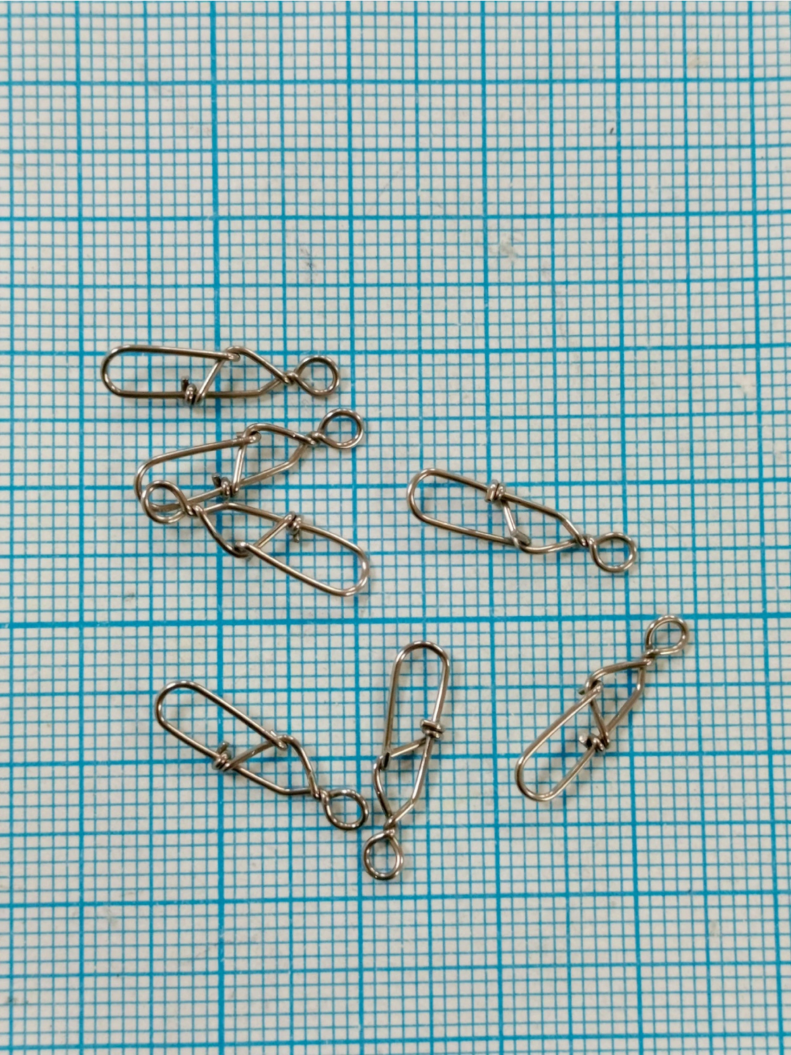 Прочные удобные застежки позволяют без лишнего вязания узлов крепить приманку к леске. Карабин подбирают в соответствии с размером воблера или блесны, балансира и т.д. Учитывается и общий тест снасти. Используются такие элементы оснастки и в донной лов...
