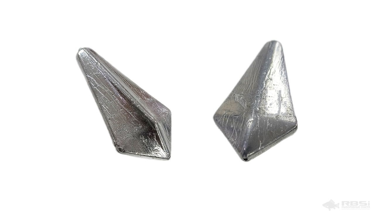 Груз Ромб с вертлюгом - это груз для донной ловли, изготавливаемый из свинца. Он плоский, выполнен в форме ромба с полой сердцевиной и имеет жесткозакрепленный вертлюг для монтажа снасти.