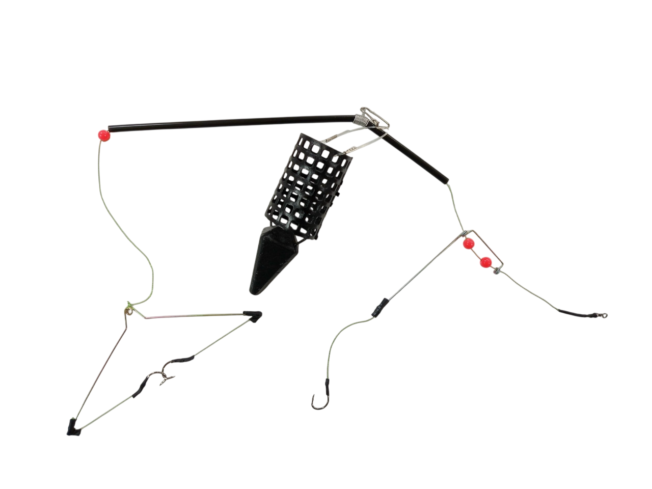 Готовый рыболовный фидерный монтаж. Комплект для фидера - это готовая оснастка для фидерной ловли. В комплект входит: 2 крючка, 1 боковой отвод, 2 бусины и противозакручиватель. Комплект готов к эксплуатации, его легко привязать к основной леске удилища и
