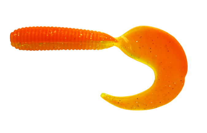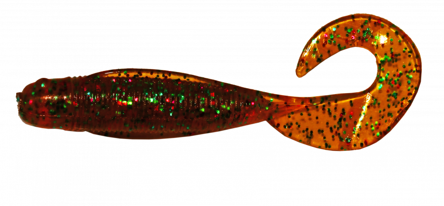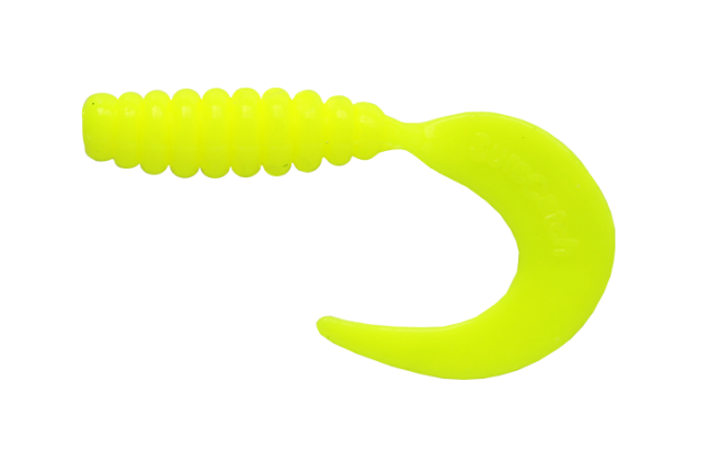 Для многих приверженцев джиговой ловли твистеры – это излюбленные приманки. Их форма очень проста, напоминает личинку, а за счет объемного серповидного хвоста создается плавная игра. Приманка ребристая, что визуально добавляет ей объема и делает ее более