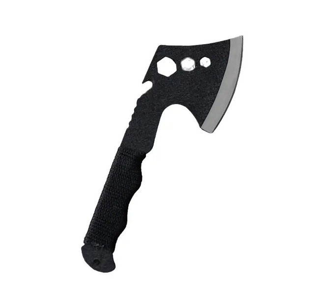 Небольшой походный цельнометаллический топорик томагавк. Небольшой вес оценят туристы, а также любящие активный отдых, рыбаки и охотники. Топор изготовлен из высококачественной стали. Финишное антибликовое чёрное покрытие улучшает эксплуатационные качеств