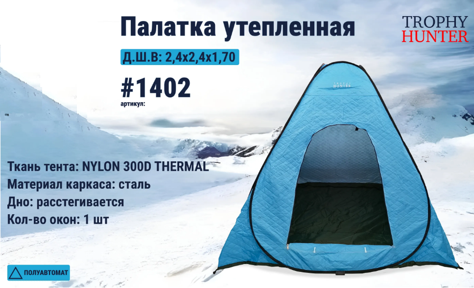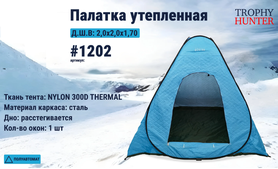 Палатка автоматическая может быть использована для различных целей, таких как кемпинг, охота, рыбалка, туризм и т.д. Она обеспечивает комфорт и защиту от холода, дождя и ветра. По углам палатки сделаны петли под ввертыши (в комплект не входят), для надежн